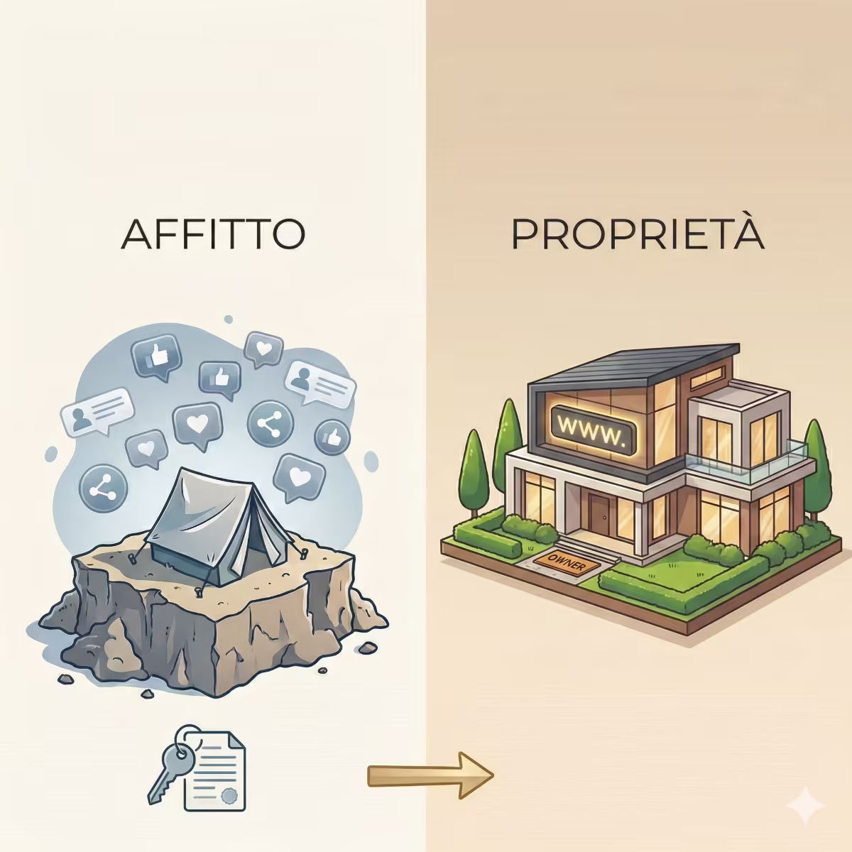 I social media sono ottimi per dialogare, ma sono "terreno in affitto". L'algoritmo cambia, la visibilità cala, i post vecchi spariscono.